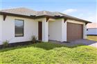 Stunning Contemporary Home in Cape Coral This Cape Coral home, constructed in 2020, offers a like-new living experience with a host of contemporary features and an open-concept floor plan. The property is currently being connected to city water, ensuring convenience and reliability for future residents. The seller will provide the buyer with credit for the cost of the city water installation, eliminating the need for well water in the future. Inviting Kitchen and Entertaining Spaces The open kitchen serves as the centerpiece of the home, featuring a spacious island that is ideal for bar-style seating and entertaining guests. The kitchen boasts a very large pantry, light cabinetry, granite countertops, and stainless-steel appliances, providing ample storage and a modern aesthetic. Storage is thoughtfully addressed throughout the kitchen area. Comfortable Living and Dining Areas Both the dining room and living room provide views of the covered lanai—a perfect setting for relaxing or enjoying alfresco dining. This seamless connection between indoor and outdoor spaces enhances the home's appeal for gatherings and everyday living. Private and Functional Bedrooms The primary bedroom includes an en suite bathroom with a double vanity, a spacious walk-in closet, and a separate linen closet, offering both comfort and convenience. Two additional bedrooms share a second full bathroom, accommodating family members or guests with ease. Additional Features and Amenities The two-car garage is conveniently connected to the hallway, which is highlighted by recessed lighting. Off the hallway, a dedicated laundry room provides shelving for extra storage. For added peace of mind, hurricane shutters are included with the home. Altogether, this property presents a wonderful opportunity for families seeking a modern and comfortable residence.
