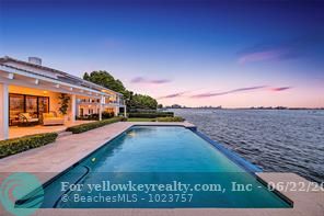 Savor panoramic Biscayne Bay views from every room in this 5, 768 SF modern residence. Set on a gated 27, 000 SF southeast point lot with 285 FT of waterfrontage, 150 FT on the Bay & 135 FT of protected canal dockage. Soaring skylit ceilings & wall-to-wall sliding glass doors frame the stunning living areas, unveiling uninterrupted bay views, a covered veranda, infinity pool, and expansive terrace ideal for alfresco dining & entertaining. The 1, 240 SF Primary Suite features a lounge area, sweeping views, & full-length balcony. Three en suite guest rooms each open to a covered loggia & spectacular sunrises. Located on a quiet cul-de-sac, this home is convenient to top rated schools, major sports venues, the Design District, world-class shopping & dining, Miami Beaches, and the Int'l Airport.