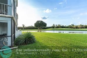 LOCATION! LOCATION! LOCATION! Enjoy your morning coffee and/or evening cheer overlooking EXPANSIVE LAKE/PGA 10TH FAIRWAY-GREEN VIEWS! Convenient 1st Floor! North/South Exposure. 2BR/2BA (1, 170SF). Fully Furnished. 2 large walk-in closets. Clean and comfortable. Recreation Lease PAID IN FULL! FREE golf (except cart fees) on two 18 hole courses (PGA & Par3); Amenities include Restaurant, Billiard Room, Bbq/Picnic Area, Clubhouse, Courtesy Bus, Exercise Room, Heated Pool, Library, Putting Green, Sauna, Shuffleboard, Tennis, Pickle Ball, Vehicle Wash Area, Electric Car Charging Station. Close to shopping, dining & highways. 15 min. to beach. Association says 55+ age required; PRICED TO SELL FAST!