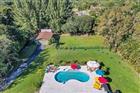 THIS CAPTIVATING HOME, WITH HIGH-CEILINGS WITH AN EXPANSIVE 5 BEDROOM 4 BATH SPLIT FLOOR PLAN SITS ON A 51, 209 SQUARE FOOT LOT OVERLOOKING A BEAUTIFULLY PRIVATE POOLSIDE OASIS. OWNERS INVESTED OVER $100, 000 ON A SALT CHLORINATED POOL, BEAUTIFUL HEAT-RESISTANT TILE WHICH SURROUNDS THE POOL AREA AND SCREENED IN LARGE SEPARATE PATIO. LARGE MASTER SUITE WITH A JACUZZI TUB. OPEN CONCEPT GOURMET KITCHEN FEATURING TOP OF THE LINE STAINLESS STEEL VIKING APPLIANCES, GRANITE COUNTERTOPS, HIGH WOOD BEAM CEILINGS. ELECTRIC FENCED GATE, EXPANSIVE DRIVEWAY. IMPACT WINDOWS, NEWER ROOF (APX 4 YEARS OLD). SEPARATE STAND ALONE OVERSIZED TWO CAR GARAGE WITH DUAL ENTRANCES, BARN AND OVERSIZED SHED. PRICED RIGHT WITH SO MANY PLUSES!!! THIS HOME WILL NOT DISAPPOINT.