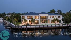 The Crown Jewel of East Deerfield Beach. A sophisticated, Georgian-Inspired Trophy Point Estate sited on 245’ of deepwater on the Kingfisher Waterway with spellbinding panoramic water views. This remarkable estate features 6-bedrooms, 7-bathrooms, two-half-baths with 8, 558+/- living square feet. Chic, Modern Interiors include an impressive primary suite with dual bathrooms. Amenities include 48kw generator, 4 bay garage, 5 Zone A/C, Smart Home Automation, office, chef's kitchen and elevator. Outdoor entertainment is enjoyed at the expansive lanai with summer kitchen and resort style heated, saltwater pool with swim up bar and spa. Ideal for the avid boater, there is a full service composite yacht dock capable of docking multiple yachts and is complemented with two(2) boat lifts.