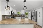 Beautiful St. Lucie Riverfront condo on Hutchinson Island in Jensen Beach. RARE - COMES WITH DEEDED DOCK. Double wide dock w/NEW pilings, electric & lift. 20, 000lb capacity. Fits 10.9W x 31L boat. Must see top floor newly renovated condo! Sunset views from balcony, living room, main bedroom & Kitchen. Sunrise views from kitchen & 2nd bedroom. Room for King size bed. All electric, plumbing, bathrooms, ceilings, walls, Impact doors & windows, flooring, kitchen have been renovated and are brand new. Luxury leather granite counter tops, Quartz kitchen sink, Italian stove, soft close cabinetry, Washer/Dryer & more. Come spend time playing in the Ocean at your deeded beach & tiki hut. Close to restaurants, shops & beaches. Pet allowed. Rented Jan-May 2026. Rental income to new owner. Furnished.