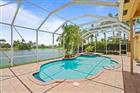Wide lakefront home with screened pool in gated Stoneridge Lake Estates. Stylish modern finishes and architectural details throughout. Split floorplan with foyer entry and volume ceilings. Formal living and dining rooms, updated kitchen with island, quartz counters, European cabinetry, pantry and eat-in café. Spacious family room opens to large screened patio with refinished pool and spa with sweeping lake views—feels like a second living area. Luxurious primary suite with elegant bath and whirlpool tub, premium tile and fixtures. Impact windows, shutters and doors, laundry room. Community features tennis, pickleball, playground, Comcast Cable package and ADT monitored alarm. Prime location near top-rated schools (walk to Hawkes Bluff Elementary) parks, shopping, Publix, Lowe’s, and I-75.
