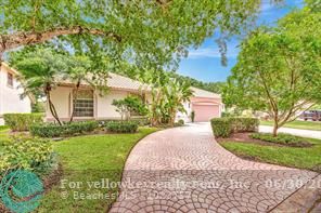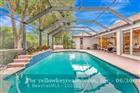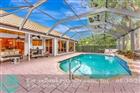 Your new home is this gorgeous 5 bedroom, 3.5 bathroom residence in Eagle Trace. First glances show lush landscaping, a circular brick driveway, and coated garage floor. Double doors lead to vaulted ceilings, floor-to-ceiling windows, and marble floors. An open kitchen and family room feature wood cabinetry and granite countertops. The master suite hosts a soaking tub, double vanities, and walk-in closet. The dining room, living room, and family room are spacious. The large pool is surrounded by a screened brick deck, fenced yard, and a private water view. Amenities: laundry room, security system, storm shutters, propane generator, new circuit breaker panel, new 50-gal water heater. Eagle Trace is a non-equity community with $270 HOA monthly fee.