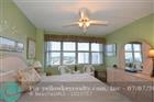JUST REDUCED. THIS UNIT'S UNIQUE LOCATION, PROVIDES AMAZING VIEWS OF THE INTRACOASTAL WATWERWAY, NORTH TOWARDS POMPANO, EAST WITH OCEAN VIEWS AND WEST TO A SUN SETTING HORIZON. THIS SPACIOUS APARTMENT OFFERS, A BRIGHT LIVING ROOM WITH ENTRANCE TO NEW LARGE GLASS BALCONY. UPDATED KITCHEN WITH HIGH CEILING LIGHTING, OFFERS, CUSTOM DESIGNER CABINETS AND APLIANCES. TWO LARGE BEDROOMS. MASTER BEDROOM HAS A VANITY DRESSING AREA WITH A HUGE WALK-IN CLOSET. THIS BUILDING, AS AN ADDED FEATURE, HAS INSTALLED AIR-CONDITIONED HALLWAYS, FOR OWNER'S COMFORT. BUILDING'S CONVENIENT BEACH AREA LOCATION, OFFERS: WALK TO BEACH, BANKS, SHOPS, POST OFFICE, RESTAURANTS AND MEDICAL OFFICES. TRULY AN EXCELLENT VALUE. PRICED TO SELL. A PLEASEURE TO SHOW. SCHEDULE YOUR APPOINTMENT TODAY.
