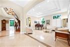 This timeless Mediterranean estate, built in 2003, is located in the prestigious and serene Thornhill Green and blends classic architectural detail with thoughtful, livable luxury. Offering 6 bedrooms, 6 bathrooms, and an oversized 2-car garage, the home features a smooth stucco exterior, a 2022 Spanish tile roof, and a grand arched entryway that sets the tone for what awaits inside. As you enter, architectural detailing abounds—arched doorways, tray and coffered ceilings, and refined millwork create a luxurious yet inviting ambiance. The main level flooring is finished in stunning Jerusalem stone. The heart of the home is the expansive chef’s kitchen, which opens to soaring ceilings and airy double-height windows that fill the space with natural light and lush garden views.