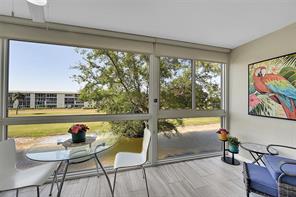 Step into this turn-key, fully furnished, and tastefully decorated 2-bedroom/2-bath condo offering panoramic golf and lake views in the heart of Wynmoor. Beautifully remodeled home features an open-concept kitchen with newer cabinets, stainless steel appliances, and sleek quartz countertops. Enjoy porcelain tile floors throughout, along with modern bathrooms designed with upgraded vanities and showers. Relax on your enclosed lanai with impact windows and custom blinds, the perfect spot to soak in serene views. Additional updates: A/C (2017), water heater (2019), electrical panel (2022). This 55+ community, residents enjoy resort-style amenities including a restaurant, golf, tennis and pickleball courts, clubhouse, theater, etc. Move-in ready. Just bring a suitcase