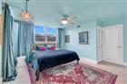 A true unique condo exquisitly crafted corner residence offers 1 spacious bedroom, 1.5 baths, and a versatile den/office designed by owner. Natural light, the home features impact windows, custom glass doors, travertine flooring, & marble accents in both the closet & half bath. The primary suite boasts an expansive custom California Closet & a luxurious bath with a carved wood vanity & imported fixtures, while the second bath showcases a glass enclosed tub/shower & travertine vanity The Gibson designed kitchen is a chef’s delight, with black granite counters, Carrera marble backsplash, & Whirlpool appliances. A welcoming foyer sets the tone for the home, & just beyond your door, a patio invites relaxation. Close to restaurants & shops, & the beach five minutes away. Love at first sight!