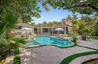 Palm Beach inspiration provides charm and elegance to this professionally designed and decorated tri level residence. 1974 expansion and 2024 renovation. Villa Acacia occupies double 15, 000sf tropically landscaped property. Walled and gated for privacy and security in patrolled Idlewyld. Stunning retreat with exceptional entertaining flow. Formal living room with fireplace, wine cellar, wet bar and access to expansive covered terrace and summer kitchen. Guest bath, chef's kitchen with breakfast area, formal dining room and TV living room with beams access second terrace. Split bedroom plan offers privacy to primary suite with sitting area, spa styled bath and custom closet. Two additional bedroom suites. Resort style pool and lawn area must be seen. Selected furnishings are negotiable.