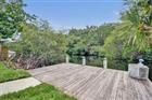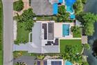 For those seeking a luxuriously remodeled, contemporary home w/ ocean access & extensive upgrades, look no further—this is your private paradise! Striking stacked-stone façade w/ 2002 metal roof & energy-efficient 2024 solar panels. Inside, the open-concept kitchen showcases shaker cabinetry, quartz counters, waterfall-edge bar & premium appliances accented in gold. Split BR layout ensures privacy, while spa-inspired baths create a resort-like atmosphere. Elegant porcelain tile flows thru/out, supported by a 2-zone AC system (2020/2022). Step outside to your oversized backyard designed for entertaining, featuring Jerusalem stone patio, sparkling pool, tiki hut & private dock. 2-car garage, sep. laundry, upgraded lighting, fans & more add to this exceptional property...a true must-see!