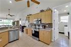 Welcome to this stunning 3-bedroom, plus den, custom-built home in Cape Coral's highly sought-after Burnt Store Road corridor, featuring 2, 096 sqft of spacious living space. The owner's suite boasts luxurious features, including high cathedral ceilings, double walk-in closets, a relaxing soaker tub, a separate shower, and a stylish dual sink vanity. The impressive open-concept living space features a modern kitchen with breakfast bar seating and spotless Corian countertops, complemented by top-grade stainless steel appliances. The home also showcases wood flooring and tile throughout, ceiling fans for optimal airflow, a separate laundry room with ample cabinets, and an enclosed lanai for relaxation and enjoying the beautiful Florida sunshine.