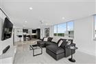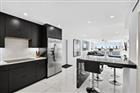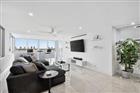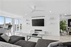 Penthouse Corner Unit with Panoramic Water Views! Welcome to your dream waterfront retreat! This stunning top-floor corner penthouse condo offers breathtaking panoramic views of the Intracoastal Waterway, ocean, and the skyline from nearly every room. With floor-to-ceiling impact windows wrapping around the open living spaces, natural light floods the home while showcasing the sparkling blue waters just outside. Inside, the residence has been fully updated with a sleek modern design. The open-concept living and dining areas feature glossy porcelain tile floors, recessed LED lighting, and a contemporary ceiling fans, creating a bright and airy atmosphere. The designer kitchen boasts custom matte black cabinetry, quartz countertops, stainless steel appliances, and a spacious breakfast