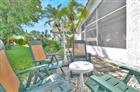 55+ Community - Discover this beautifully maintained 3-bedroom, 2-bath Lakeridge home, where comfort meets connection. Vaulted ceilings and a skylight fill the open layout with natural light, illuminating warm laminate floors throughout. The kitchen shines with sleek black lacquer countertops, double stainless sink, Frigidaire appliances, and abundant cabinetry. The spacious primary suite offers private patio access, dual vanities, and a generous walk-in closet. Relax on the screened, covered patio overlooking lush garden views. Additional features include a 1-car garage, 2022 A/C, 2018 roof, and low $295 HOA covering cable, lawn, and exterior care. Minutes to beaches, shopping, and dining — a serene retreat with timeless Florida charm.