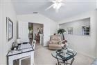 TURNKEY COACH HOME WITH PRESERVE VIEW IN COLONIAL COUNTRY CLUB! This furnished 2BR + den, 2BA home sits on one of the quietest streets in this gated golf community. Enjoy a bright, open floor plan with vaulted ceilings, coastal colors, and abundant natural light. The remodeled kitchen features white shaker cabinets, quartz counters, glass tile backsplash, stainless appliances (2021), and breakfast bar. Relax on the tiled, screened lanai overlooking the peaceful preserve. The primary suite offers a walk-in closet and ensuite bath with dual vanities and glass shower. Features include solar-tinted windows, neutral tile/carpet, and 1-car garage. Steps to two pools and close to Colonial’s resort amenities, golf, dining, and I-75. Offered TURNKEY!