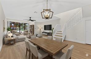 Beautifully 2-Story Townhouse with Lake Views This stunning 2-bedroom, 2.5-bath townhouse offers gorgeous lake views and a modern open floor plan. Each bedroom features its own private bathroom with updated vanities and designer sinks, plus a convenient guest half bath downstairs. The home boasts kitchen with updated counters and stainless-steel appliances, along with wood laminate flooring throughout. Rent comes includes water and basic cable