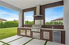 Nestled on a spacious half-acre lot within a private gated community, this modern newer estate blends luxury, and comfort. Every detail from kitchen to bathrooms and flooring showcases a refined selection of high-end materials. Each bathroom features its own unique mix of upscale finishes and design touches. The upgraded modern outdoor kitchen sets the tone for outdoor living, complete with a large overhang and expansive patio area. Mature privacy hedges outlines backyard. Inside, soaring ceiling heights enhance the sense of space. Additional features include brick-paver driveway, impact glass, and distinctive curb appeal highlighted by brick trim and modern architectural touches. The 3rd garage is climate-controlled with a dedicated A/C unit, making it ideal for a home gym or studio.