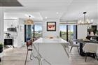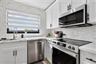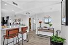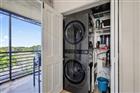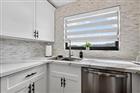 Stunning fully remodeled 2BR/2BA top-floor corner unit, 1, 187 sq ft of open-concept living with panoramic garden and lake views, no neighbors above. Designer kitchen, quartz waterfall island, marble backsplash, white cabinetry, and stainless steel appliances. Interior features include luxury vinyl plank flooring throughout, impact windows and sliders, motorized shades, and custom built-in closet systems in both bedrooms. The spa-style primary suite offers barn doors, a dual vanity, mosaic tile finishes, and a spacious walk-in closet. Additional upgrades: New ventless LG washer/dryer, tankless water heater, whole-home water filtration system, and a 2025 A/C air handler and compressor. 2 oversized screened balconies with privacy roll-down shades, plus a same-floor oversized storage unit.