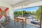 Centrally located, clean and turnkey 2 bed/2 bath top floor, corner unit. This spacious condo features a newer AC and water heater, a fresh coat of paint and laminate floors. You won't find any carpeting or popcorn ceilings here. The guest bathroom has been updated as has the primary bath vanity. Ample storage throughout - both bedrooms have walk-in closets and the primary has an additional wall of closets as well. Kitchen features butcher block countertops and newer appliances. Screened-in balcony overlooks pool and tennis courts. Washer and dryer just down the hall by the elevator. The community has completed their 40 year inspection, roofs redone in 2018, and the budget allocates 10% towards reserves. No pending assessments. Pets allowed up to 25 lbs, no renting first year of ownership.