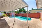 Welcome to this charming and well-cared-for 3-bedroom, 2-bath home located on a quiet interior street close to shopping, schools, and major airports. The home features a fenced pool with a covered patio area—perfect for relaxing or entertaining—and a spacious backyard complete with a storage shed. Inside, you’ll enjoy a recently updated kitchen with modern finishes and new appliances, along with new porcelain tile flooring throughout the main living areas. Additional highlights include crown molding, a tankless water heater, an indoor washing machine, and extra storage/workspace in the carport area. The large front porch offers a welcoming space to unwind and enjoy the breeze. A fantastic opportunity to own a well-kept home in a desirable, family-friendly community.