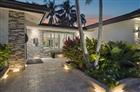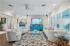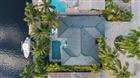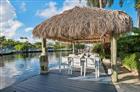 Exquisitely updated tropical waterfront pool home, perfectly positioned two homes from the point on a wide canal with a turning basin. Enjoy a 9, 000 lb boat lift and expansive dockside Tiki Hut designed for effortless lounging and entertaining. Light-filled open-concept living includes 3 bedrooms and 2 spa-quality baths. The gourmet kitchen showcases a Sub-Zero refrigerator, Sub-Zero wine cooler and Wolf 6-burner gas range. Additional features include a split bedroom plan, impact windows and door, and a saltwater pool. Premium upgrades: 2024 travertine pool deck and driveway, 2024 pool resurfacing, whole-house generator, 2022 saltwater system, 2019 new roof, outdoor shower and lush landscaping and lighting.