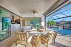 Experience luxury waterfront living in this 2018 ICF-built home featuring steel-reinforced concrete walls, 2 owner’s suites, Gulf access, a heated pool, composite dock, tiki hut, and 16k lift. Over 3, 100 sqft showcases travertine floors, 12' coffered ceilings, 90-degree sliders, and elegant trim. The gourmet kitchen includes Samsung Smart Connect appliances, wall oven, vent hood, and soft-close cabinetry. Primary suite offers lanai access, water views, and a spa-inspired bath. Impact-rated 3-car garage with 12' ceilings and tiled floors. Roll-down shutters, picture-window screens, zero-scaping, French drains, and outdoor shower add ease and durability. Assessments paid; furnishings negotiable.