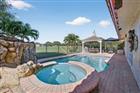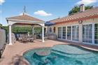 Welcome to this exceptional residence where charm, comfort, and breathtaking scenery blend seamlessly. Nestled amid picturesque golf course and lake views, this 3-bedroom, 2.5-bath sanctuary offers charm and functionality at every turn. The home features a circular paved driveway framed by lush landscaping, a 2-car garage, and solar panels for added efficiency. Inside, wood flooring flows throughout, complemented by vaulted ceilings and abundant natural light. French doors open to the serene backyard patio. The spacious family room is anchored by a charming brick fireplace. The kitchen boasts extensive cabinetry, granite countertops, stone backsplash, and sleek black stainless steel appliances. A separate laundry room adds convenience. Upgrades galore.