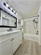 Welcome home to this beautifully updated and move-in ready condo featuring a modern kitchen with gray cabinetry, warm butcher-block countertops, stainless steel appliances, and subway tile backsplash. The functional galley layout offers ample storage and a pantry. Enjoy a spacious, light-filled living area with wood-look flooring, neutral finishes, and an open layout ideal for both relaxing and entertaining. The updated bathroom showcases a stylish vanity, sleek black fixtures, and a tiled shower/tub with a rain-style showerhead, creating a fresh, spa-like feel. Step out onto the spacious screened balcony overlooking a tranquil lake, perfect for morning coffee or unwinding while enjoying peaceful water views. Don't miss the opportunity to make it your next home.