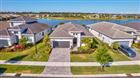 Winter scape resort style, lakefront 3 beds floor plan SFH w/ stunning panoramic views of the water, creating a serene & picturesque setting. Modern One-story home featuring impressive 10 & 11-foot ceilings & expansive windows for natural light. The elegant, seamless laminate wood flooring throughout, enhances the sense of spaciousness & warmth. Large den. Tankless water heater, Frameless glass shower adds a touch of sophistication. Step out onto the screened-in lanai, providing ample space for relaxation. The home is situated in a highly sought-after 55+ gated community that offers a wide array of resort-style amenities, including pickleball, tennis, heated pool, dog park, bocce courts, & entertainment director adds to a vibrant community life. 2 bedrooms plus an office/den/guest room.