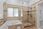 Stunning single story lakefront home with heated "mini" pool & expansive travertine deck in guard gated Meadows! Meticulously maintained, NEWLY REMODELED throughout! Newer porcelain tile flooring in all living areas; vinyl floors in all bedrooms. DEC 2024: FULL IMPACT GLASS THROUGHOUT plus accordion shutters left for added protection. Freshly painted(2025), all-new window shades, door hardware, smoothed walls/ceilings & recessed LED lighting. NEW 2020 open modern kitchen with cabinetry extended to breakfast area; baths also fully remodeled. ADT alarm-ready system & Ethernet wiring. Well maintained Trane AC unit (2021) & NEW 80-ton water heater (2025). Also in 2025: resealed travertine deck, refinished and re-sealed brick paver driveway, walkway & porch, landscaping & lighting. A+ schools!