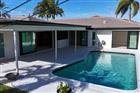 Renovated in 2024, perfectly blending modern elegance with functional living space. This beautiful home features a new slate roof (2025) and an open floor plan with four bedrooms and three full baths. The large galley kitchen features new stainless KitchenAid appliances, quartz countertops, and custom cabinetry. This luxurious, high-end residence is located in an exclusive HOA-free neighborhood 1/2 mile from the Ocean. The entire home is protected by new impact doors and windows and features beautiful terrazzo floors. The sizable, private backyard is perfect for entertaining with pool and ample space for outdoor furniture and fire-pit. The master suite sports a sleek new modern bathroom with pool access. All bedrooms have built in closets, new ceiling fans, and efficient LED lighting.