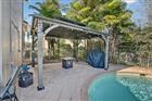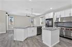 The Fresno-5 beds/3 baths. On a large pie-shaped lakefront lot in a quiet cul-de-sac. 1 bed/1 full bath down. Fresh interior paint. Moisture-resistant laminate floor throughout. Fully remodeled kitchen is the centerpiece of the home, featuring a custom island design, granite countertops, 42" crowned cabinetry, stainless steel appliances, and a professional, oversized gas stove and oven. Volume ceilings. The primary suite includes dual sinks and a corner soaking tub. Oversized fenced pie-shaped lot with wide lake and pool views & space for entertaining. Accordion shutters on the upper level with panels below, 3 car garage. Brick paver drive. Gutters, exterior lighting. On a quiet interior street, this home delivers space, privacy, and sought-after lakefront living in Laguna Isles.