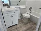 Renovated Waterfront Villa! Freshly painted, vinyl wood flooring, white shaker cabinetry. Kitchen features new GE SS appliances, side by side refrigerator w/ water filtration & ice maker, self cleaning oven and above microwave. Butcher block counter tops and inlay sink. Renovated baths! New vanities, hardware & commodes, 2 new hot water heaters. New blinds throughout and ceiling fans with remotes. Central A/C Relax on your enclosed patio w/ tropical water view. Private garden area. Washer/Dryer hook up. Best location in KP! Close to Main Clubhouse facility. Kings Pointe is a 55+ resort style community offering tons of amenities , bistro, golf, in door/outdoor pools, theatre, transportation, bocci, shuffle board & activities galore. SOLD AS IS. No lease 3 years. Perfect for snowbird