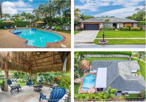 Welcome to this coastal farmhouse style single-family home featuring 4 bedrooms, 2 bathrooms, and a 2-car garage on a spacious corner lot. Inside, the home offers a brand new custom kitchen with island, a walk-in pantry with coffee bar, and separate living and dining areas that provide comfort and privacy. Step outside to a private, fully fenced backyard designed for entertaining, complete with tropical landscaping, an enclosed patio, pool and jacuzzi, wet bar, tiki hut with sand, and additional space to store a boat or RV. The neighborhood park offers a large walking path overlooking a lake, large kids playground, as well as tennis and pickle ball courts. An exceptional place to call home.