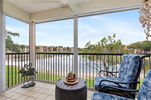 Welcome to Coral Gate, a desirable 55+ community offering resort-style living. This move-in-ready 2nd-floor condo features a beautiful lake view from the screened balcony—perfect for morning coffee or unwinding with a glass of wine. The home includes double-hung impact windows, a spacious eat-in kitchen with quartz countertops, full quartz backsplash, and stainless steel appliances, along with crown molding and laminate flooring throughout. Enjoy the convenience of in-unit laundry and a generous primary bedroom with three closets. Sold furnished or unfurnished. Association fee includes basic cable, internet, water, insurance, and roof repair/replacement. Coral Gate offers three pools (one directly in front of this building), clubhouses, fitness center, and more.