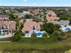Model-perfect 5 bedroom, 4.5 bathroom w captivating views of the rolling fairway & tranquil lake, creating a picturesque setting. The home showcases a chef’s kitchen appointed w state-of-the-art stainless steel appliances, gas range, farmhouse sink, double ovens & exquisite quartz countertops. First-floor primary suite & guest bedroom, marble & hardwood flooring, w soaring volume ceilings that enhance the home’s light-filled ambiance. Nestled on a quiet cul-de-sac, surrounded by lush, manicured landscaping that ensures both privacy and serenity. Outdoors, enjoy resort-style living w a fully equipped BBQ kitchen, sparkling saltwater pool. Elegant crown molding, hurricane-impact windows, newly painted exterior and newer driveway. Every detail reflects exceptional pride of ownership.