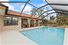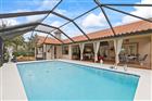 This well-appointed pool home sits on a beautifully landscaped lot and boasts a new tiled roof (Oct '24). The covered front door leads to a generous entry hall and large living room with bright windows to the front and a formal dining room opening to the pool deck. The centrally located kitchen opens to the dining room and den. Convenient pass-throughs to the breakfast area and the lanai make entertaining a cinch. Relax in front of the den's wood-burning fireplace or prepare a tasty drink at the built-in wet bar. The spacious Primary Suite, with two closets, benefits from the split-plan privacy. On the opposite side of the home are two oversized secondary bedrooms, and a full bathroom that opens to the pool. The recently screened lanai has a convenient wet bar and generous covered area. Enjoy exercising or playing in the private 15x30ft pool. With too many custom features to mention... granite countertops, storage galore, tile & laminate flooring, oversized garage(23x25ft), irrigation on well, .... this home is definitely worthy of your interest. Adjacent lot available. HVAC 06/19 Hot Water Heater 2024, Pool cage/screen 11/23, Pool Pump 11/23, 30’x15’ Pool relined 2020, Fenced along rear 2024, washer & dryer 3yrs old, refrigerator 2024