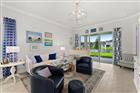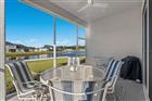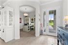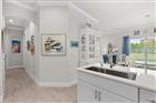 Welcome to this stunning 2-bedroom, 2-bathroom villa with a den/flex room, perfectly situated in one of Ormond Beach's most desirable communities. Overlooking tranquil waters with a soothing fountain, this home combines luxury finishes, thoughtful design, and low-maintenance living. Step inside to find upgraded wood-look tile flooring, plantation shutters, and upscale lighting throughout. The spacious, open-concept kitchen is a chef's dream, featuring 42'' upgraded cabinetry, quartz countertops and backsplash, a large farmhouse-style sink, corner pantry, and an upgraded range—all beautifully designed for both function and style. The primary suite is a peaceful retreat with elegant French doors, two custom walk-in closets, and a spa-inspired ensuite bathroom with a walk-in shower and private water closet. A split-bedroom layout provides privacy for guests, complemented by a well-appointed hall bath. Enjoy the flexibility of a separate den/flex room perfect for a home office, media room, or guest space. The laundry room adds everyday convenience, while the garage impresses with epoxy flooring and extra storage. Loaded with upgrades and move-in ready, this villa offers elegant living in a peaceful, scenic setting close to Ormond Beach's best amenities. Come join the Plantation Bay lifestyle! 45 holes of golf, tennis, pickleball, 2 pools, cabana, spa/fitness center and the New Clubhouse! Buyers of this home will receive a substantial discount on the initiation fees when you join within 30 days of closing