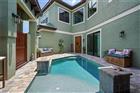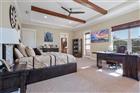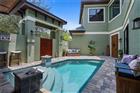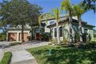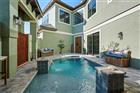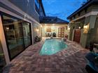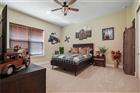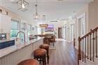 Welcome to this luxurious builder model home, perfectly situated on a large cul-de-sac lot within the Tidelands. This home offers 3, 644 square feet of elegant living space with 10’ ceilings throughout and a dramatic 24’ great room ceiling. The home includes five bedrooms and four and a half baths, with dual primary bedrooms and a pool cabana for ultimate flexibility and outdoor enjoyment. Luxury vinyl plank flooring runs throughout, with luxury carpet in the secondary bedrooms. Built-in master closets, wood shelving in all secondary closets and the pantry, and a central vacuum system on both floors provide ample storage and convenience. The kitchen is a chef’s dream, featuring a Samsung Smart appliance package, Nest thermostats, custom oak beam work in all ceilings, and Designer’s Choice real wood, soft close, dovetail cabinets. Under and above LED cabinet lighting, a tiled backsplash, custom cooktop hood, frosted glass pantry door, and natural quartz countertops enhance the kitchen’s functionality and style. Bathrooms feature shower tiles to the ceiling, 3/8” frameless shower glass, Moen and Delta plumbing fixtures, and Mirabella toilets with soft close lids. The master suite benefits from a tankless electric water heater, while a 50-gallon tanked heater serves the secondary baths. Custom interior doors, real wood baseboards and casings, and oak railings with iron balusters add to the home’s polished charm. This home boasts an array of premium exterior and structural features, including durable vinyl impact windows, Masonite 8’ impact exterior doors, and a Generac transfer switch that makes the home generator-ready. The property also features a buried 120-gallon LP tank, robust block first-floor construction, and a stylish flat concrete tile roof. The paver circle driveway and custom landscaping with lighting, maintained by the HOA, add to the home's curb appeal. Additionally, the property includes a heated courtyard salt system pool, EV charging station, and a spacious 2.5 car garage/workshop with epoxy floor finish and garage door openers with keypad entry. The stucco exterior ensures lasting beauty and protection. The home’s exterior is complemented by powder-coated aluminum railings and gutters. This home is equipped with open cell foam insulation, a linear electric fireplace with heat, and a Foresight golf simulator for year-round entertainment. The property is also secured with three Ring cameras and a doorbell camera. Power window coverings in the main living area and master bedroom, a washer and dryer, and Kwikset smart key handle sets complete the package. With custom landscaping and lighting maintained by the HOA, this home combines luxury, convenience, and state-of-the-art features, making it the perfect sanctuary for modern living. Don’t miss your chance to own this exceptional property!