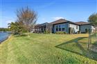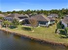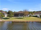 This meticulously maintained Juliette floor plan offers refined Florida living with a private courtyard entry and tranquil lakefront setting in the sought-after gated community of Plantation Bay Golf & Country Club. Owned by the original, part-time owner, this 3-bedroom plus flex room home is filled with natural light and thoughtfully upgraded throughout. The welcoming entry showcases high ceilings and crown molding, and flows seamlessly into the main living area where expansive lake views take center stage. The family room features tile plank flooring, a custom built-in entertainment center, surround sound, electric blinds, and triple sliders opening to the extended lanai. The light and bright kitchen is appointed with 42'' white all-wood cabinetry with soft-close dovetail drawers, tile backsplash, built-in stainless steel GE appliances, a separate cooktop range, breakfast bar/island, walk-in pantry, and elegant crown molding. The adjoining dining room enjoys panoramic (CONTINUED) lake views, custom drapery, crown molding, and continuous tile plank flooring. The primary suite offers peaceful lake and fountain views, crown molding, custom window treatments, and a Closets by Design walk-in closet with custom built-ins. The spa-inspired bath features dual sinks on quartz vanity, a large walk-in tile shower, Kohler soaking tub, and separate water closet. Bedroom two is located at the front of the home and features plantation shutters, abundant natural light, and a Minka Aire ceiling fan. Bedroom three also includes a Minka Aire fan. Bathroom two is finished with a white quartz vanity and tile walk-in shower. A versatile flex room with pocket door, plantation shutters, surround sound, and tile plank flooring is currently used as an office. Additional highlights include a laundry room with sink, massive three-car garage with epoxy floors, whole-house water filtration system, hybrid water heater, Ecobee smart thermostat, interior and exterior camera security system, and tile plank flooring throughout the home except bedrooms. Outdoor living shines on the extended travertine-paver lanai, pre-plumbed for an outdoor kitchen, offering breathtaking grand lake and fountain views, refreshing breezes, and a backyard large enough for a pool. The property is enhanced by paver driveway and walkways, a personal flagpole, upgraded rock landscaped beds, additional lush tropical plantings, and an irrigation system. Residents of Plantation Bay enjoy an optional membership lifestyle featuring 45 holes of championship golf course, clubhouse dining with new 30 million dollar Founders Clubhouse, resort-style pools, 9 pickleball courts and 10 tennis courts, a fitness and spa center, walking trails, and year-round social events, all within a secure, guard-gated community ideally located near beaches, shopping, dining, and I-95. Buyers of this home to receive a substantial discount on initiation fee at the club. Ask listing agent for details. Details for effortless living and entertaining, this exceptional lakefront home delivers comfort, quality, and resort style living at its finest.