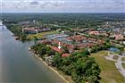 Waterfront living at its best in this competitively priced 3-bedroom, 2-bath corner, top-floor condo offering maintenance-free living and serene coastal surroundings along the Intracoastal Waterway. This light-filled end unit features vaulted ceilings, a desirable split floorplan, and abundant windows with peaceful water views from the kitchen, living room, primary bedroom, and screened lanai—creating a calm, serene interior perfect for relaxing or entertaining. The fully renovated condo includes luxury vinyl plank flooring (2023), updated ceiling fans, a chef-inspired kitchen with stone countertops, wood cabinetry with crown molding and soft-close drawers, stainless steel appliances including a 2023 range and 2022 refrigerator, plus a 2025 washer, dryer, and 2025 A/C. The spacious primary suite offers vaulted ceilings, water views, and an updated ensuite bath with dual vanities and a walk-in shower, while two generous guest bedrooms provide flexible living options. Enjoy a pet-friendly waterfront community with marina, pool, clubhouse, pickleball, tennis, shuffleboard, putting green, and waterfront park, with HOA covering water, sewer, internet, and termite maintenance, all conveniently located near European Village and just minutes to the beach.
