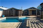 Set on natural elevation along highly sought-after Central Avenue, this coastal home captures refreshing ocean breezes and an unbeatable beachside lifestyle just one block from the Atlantic Ocean. The spacious living room features a wood-burning fireplace, while easy-to-maintain tile flooring runs throughout the home. The updated kitchen offers wood cabinetry, granite countertops, a tile backsplash, and stainless steel appliances. The primary en-suite includes a dual-sink vanity, walk-in shower, water closet, and a large walk-in closet. With a private entrance and paved courtyard, the suite is ideal for an in-law setup or guest retreat. A wood-paneled dining room with French doors opens to a relaxed, resort-style backyard complete with a heated saltwater pool, paver patio for lounging or dining, covered in custom built pergola, cozy fire pit area, sauna, and outdoor shower and extra storage for pool equipment and water toys. A large shed offers flexibility as a pool cabana or workshop. Perfect backyard oasis for entertaining. A private rear easement features a gated second driveway, providing secure parking for an RV, golf cart, trailer, or boat—all fully fenced for privacy. Located just minutes from local dining, shopping, and the pier, this home delivers the best of coastal living. All information in the MLS is intended to be accurate but cannot be guaranteed.