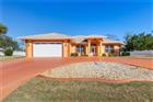 Welcome to 34 Woodfield Drive, a beautifully maintained 3-bedroom, 3 full-bath pool home built by Ideal Homes, situated on an expansive 20, 000-square-foot property offering space, privacy, and exceptional curb appeal. A striking circular driveway, manicured curb scaping, and a classic tile roof create an impressive arrival and set the tone for the quality craftsmanship found throughout the home. Inside, the thoughtfully designed split-bedroom floor plan provides both functionality and privacy. The spacious main living and dining areas flow comfortably together, while the family room offers a warm and inviting space to gather. From the family room, elegant French doors lead directly out to the tiled lanai, seamlessly blending indoor and outdoor living. The kitchen features granite countertops, abundant cabinetry, and generous prep space, along with a functional layout that leads to a charming dinette area facing the lanai, offering pleasant views of the outdoor living space while you dine. The private primary suite is tucked away from the guest bedrooms, offering a peaceful retreat complete with a spacious en-suite bath featuring dual vanities, a soaking tub, a separate shower, and a walk-in closet. The additional bedrooms are positioned on the opposite side of the home and share a well-appointed full bathroom, providing comfort and privacy for family or guests. The third full bath serves as a dedicated pool bathroom and is accessed directly from the tiled lanai, creating true convenience for outdoor entertaining and keeping wet feet out of the main living areas. Step outside to your backyard oasis where a sparkling saltwater pool awaits with it's freshly painted new color. The covered, tiled lanai and fully equipped outdoor kitchen are designed for effortless year-round entertaining. A privacy fence encloses the sides and rear of the property, enhancing seclusion while maintaining an open and welcoming front approach. A dedicated pool storage room keeps equipment organized, and an additional storage shed provides even more practical space. Additional highlights include a 2023 air conditioner, a termite bond in place for added protection, and a Culligan Gold Series water system providing enhanced water quality throughout the home. Conveniently located close to all amenities and just minutes from Pine Lakes Golf Club, this exceptional property delivers the ideal blend of privacy, functionality, and Florida lifestyle living. Schedule your private showing today.