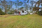 One-of-a-kind and full of character, this Mid-Century Modern-inspired home immediately commands your attention. Thoughtfully updated in 2023, with a metal roof installed in 2018 and a full re-plumb completed in 2025, this home offers the perfect blend of architectural charm and meaningful system upgrades. Drenched in natural light from oversized black-framed windows of every shape and size, the interior celebrates volume, texture, and design. The dramatic main living area features soaring 20-foot ceilings, a stunning balcony overlook, and a massive wood-burning brick fireplace--complete with a built-in wood box--creating the ultimate gathering and entertaining space, with a conveniently located half bath nearby.The primary suite is privately tucked beneath the balcony just off the main living area and features a modest yet stylish en-suite with a walk-in shower and double-sink vanity. Just down the hall, a dedicated office provides the perfect work-from-home retreat. The modern kitchen with gas range flows into a spacious dining room highlighted by a contemporary accent wall, while the walk-through laundry/mudroom adds everyday convenience. Upstairs, two large bedrooms are connected by a Jack-and-Jill bath, offering flexibility for family or guests. Outside, a wraparound concrete patio helps keep maintenance simple while extending your living and entertaining space outdoors. The covered rear patio is ideal for summer barbecues, and the spacious corner lot provides room for boats, trailers, and all your recreational toys. With well and septic service and no HOA, you'll enjoy both independence and functionality--all quietly located in the heart of Palatka just minutes from downtown, the riverfront, and Ravine Gardens State Park.