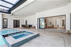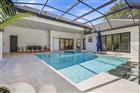 Under contract-accepting backup offers. Experience refined Florida living in this exceptional, better-than-new residence located within the gated community of Toscana. Offering 5 bedrooms, 3.5 baths, 2, 868 square feet of thoughtfully designed living space, and a spacious 3-car garage, this move-in ready home showcases high-end finishes and meticulous upgrades throughout. A dramatic double-door entry opens to a private courtyard oasis designed for true indoor-outdoor living, featuring a heated pool and spa with fountains, travertine decking, an outdoor fireplace and shower, and custom ambient lighting ideal for relaxing or entertaining. Expansive triple pocket sliders create a seamless transition between interior and exterior spaces. The designer kitchen blends style and function with quartz countertops and full backsplash, an upgraded island with cherry oak accents, double-stacked cabinetry, and a large walk-in pantry. The adjacent family room highlights wood beam detailing, a custom fireplace wall with built-ins, integrated speakers, and tailored shelving. A formal dining area and flexible bonus space provide versatility for both everyday living and hosting. The private owner’s suite offers direct courtyard access and a spa-inspired bath featuring barn door entry, a soaking tub, dual vanities, an oversized shower with dual showerheads, and an expansive walk-in closet. A detached guest house with en-suite bath provides exceptional privacy for visitors or extended stays. Additional enhancements include tray ceilings, aluminum fencing, seamless gutters, custom accent walls, and professionally designed landscaping. Toscana residents enjoy lighted sidewalks, beautifully maintained surroundings, and a welcoming community atmosphere, all conveniently located near beaches, dining, shopping, schools, and medical facilities. This residence presents a rare opportunity to enjoy luxury, comfort, and convenience without the timeline of new construction.