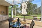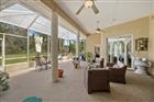 This beautifully designed FULLY REMODELED home features impressive 11-foot ceilings throughout, with a stunning 14.5-foot cathedral ceiling in the family room, creating an open feel. ROOF 2020, HWH 2019, A/C 2011 The master bathroom has been FULLY UPGRADED with tiled shower walls, a NEW GLASS DOOR , modern fixtures, GRANITE countertops with NEW SINKS & FAUCETS updated lighting, and tile flooring, along with a convenient linen closet. Additional bathrooms throughout the home include UPFRADED toilets, stylish lighting, and durable tile flooring. The spacious master bedroom boasts tray ceilings, wood flooring, a ceiling fan, and a double sliding door that opens to the porch with SERENE GOLF COURSE VIEWS (11TH TEE) , a feature shared by the second bedroom and several main living areas. The third bedroom and office/den offer comfortable finishes, including ceiling fans, with the SEPARATE DEN/OFFICE enhanced by FRENCH DOORS, crown molding, and tile flooring. The living room is equally elegant with crown molding, a tray ceiling, and tile floors. The kitchen is thoughtfully upgraded with GRANITE countertops, a tile backsplash, a Ruvati sink, and HIGH-END Kitchen-Aid appliances, including a DOUBLE OVEN and a 36-inch cooktop built into a large island with ample storage. Additional highlights include a separate microwave shelf, OVERHEAD CABINET LIGHTING, a spacious pantry, and a breakfast nook with tray ceilings and LARGE SEAMLESS GLASS WINDOWS overlooking the golf course. The adjoining family room features triple sliding doors to the EXPANSIVE screened porch, a hidden TV lift, electric fireplace, enhanced lighting, and tile flooring. The screened porch itself is an entertainer’s dream, complete with ceiling fans, Chattahoochee stone flooring, a Jenn-Air cooktop, upgraded sink, and plenty of electrical outlets, THIS LANAI IS HUGE an all set against a scenic golf course backdrop on the 11th hole. THIS IS A SEE IN PERSON TO APPRECIATE. Practical spaces include a utility room with washer and dryer hookups, built-in shelving, an ironing board, and tile flooring, as well as a two-car garage equipped with multiple outlets, a utility sink, sprinkler pump, and AC air handler. The dining room offers elegant finishes with crown molding, a ceiling fan, floor outlet, and triple sliding doors leading to the porch, again showcasing beautiful golf course views. Completing the home is a 5-year warranty poly foam concrete stabilization for the driveway and culvert, adding peace of mind to this well-appointed property.