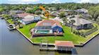 WATER, WATER EVERYWHERE! This exceptional 5-canal-view residence sits on 180 feet of water front, offering breathtaking panoramic vistas from nearly every angle. Featuring a spacious wraparound deck, a private 60-foot boat dock, and a stunning swimming pool with a cascading waterfall, this home is truly a waterfront dream. Inside, the home offers 4 generously sized bedrooms and 2.5 baths. Beautiful new laminate flooring flows throughout most of the home, complemented by rich hardwood floors in the living and dining areas. The kitchen is thoughtfully designed with stainless steel appliances, granite countertops, and a convenient built-in desk—perfect for both everyday living and entertaining. This home had interior newly painted. The fourth bedroom provides direct access to the pool bath, offering flexibility for guests or a private retreat. Additional highlights include an oversized garage and a covered dock equipped with water and electricity. The outdoor living space is equally impressive, with a solar-heated pool and a reinforced deck area designed to accommodate a future hot tub. Practical features include hurricane boards stored in the garage, an irrigation system, gutters, a new HVAC system (2024), roof (2008), and water heater (2019). This remarkable waterfront property is a rare opportunity—schedule your private showing today and experience it for yourself.