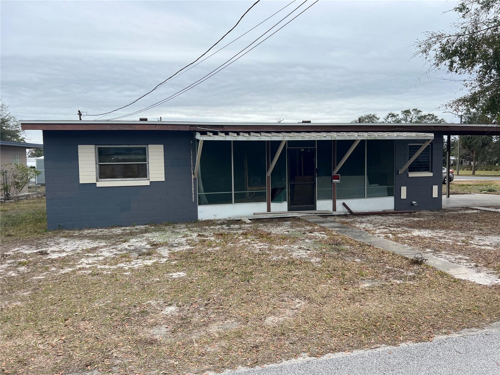 "DIAMOND IN THE ROUGH! This charming block home in a 55+ community is waiting for your personal touch. Highlights include a brand-new roof and AC unit, plus all the paint needed to give the exterior a fresh new look. Appliances are included, ready for hookup, and light fixtures are provided, just waiting to be installed. Enjoy the peaceful surroundings on this spacious corner lot, perfect for a king (or queen) of the castle. With an HOA fee of just $23/month, you'll have access to a golf cart-friendly community, complete with routes to downtown Tavares' scenic sunsets, restaurants, and shops. Plus, crossing 441 by golf cart is a breeze, giving you easy access to even more amenities. Don't miss this opportunity to put your stamp on the perfect home. This is a fixer upper, and no repairs will be offered. Sold AS IS!