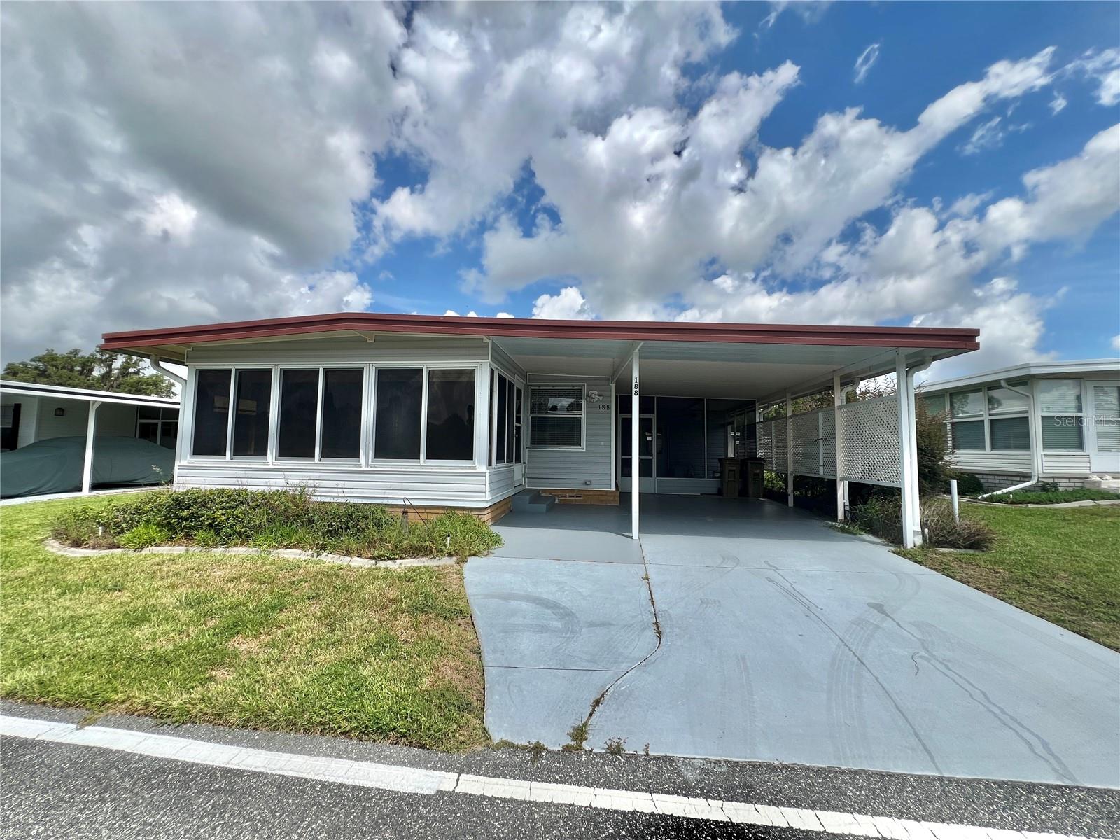 One or more photo(s) has been virtually staged. Well-maintained and move-in-ready 2-bedroom, 2-bath home located in the highly sought-after Hawthorne at Leesburg. This spacious home features a large, enclosed Florida room with large sliding door windows, perfect for year-round relaxation or entertaining. The oversized living room offers abundant natural light and neutral carpeting throughout. The kitchen includes ample cabinetry, a convenient breakfast bar, and adjacent dining area. A screened-in patio area, an expanded covered carport for golf cart parking, a large workshop and a separate laundry room provides added comfort and functionality. The home includes a regularly service central A/C, ceiling fans, a new electrical panel and plenty of storage space. Exterior features include a new roof, vinyl siding and lush landscaping ...........Hawthorne at Leesburg is an active, resident owned, 55+ cooperative, waterfront, gated community, with beautifully landscaped grounds, lakes with illuminated fountains and a relaxing and comfortable gazebo. The affordable monthly maintenance fee of $397 includes water, sewer, lawn mowing, private emergency services and storage space for recreational vehicles, boats, trailers and much more! The beautiful clubhouse is complete with a full-time program coordinator, more than 100 different activities and seating for 550. It has a hospitality lounge, card rooms, craft rooms, billiard room, fitness center, library, fine arts room and many more. There is excellent fishing, outdoor geo-thermally heated pool and two enclosed therapeutic pools. Hawthorne boasts a private marina monitored by an electronic security system with over 120 boat slips and access to the Harris Chain of Lakes and beyond.