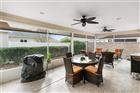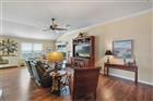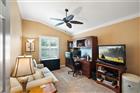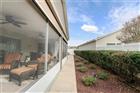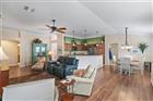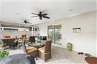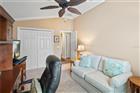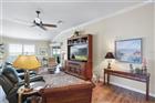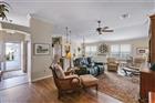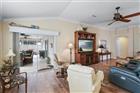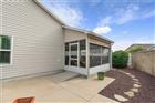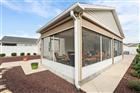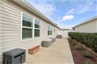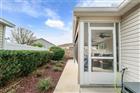 BOND PAID!!! Welcome to this beautifully upgraded Monticello / Cumberland courtyard villa featuring a rare full 2-car garage with a 4-foot extension and outstanding curb appeal with enhanced low-maintenance landscaping. From the moment you arrive you’ll notice the professionally finished epoxy surfaces by B&D Concrete Creations on the front porch, driveway, garage floor and rear lanai, along with Stipes Seamless Gutters installed around the entire villa. An upgraded Anderson storm door with roll-down window and screen adds both style and functionality. Inside, the home is loaded with upgrades including tile flooring with narrow grout lines in the kitchen, foyer and bathrooms, rich wood laminate flooring in the main living areas, and professionally painted interior throughout. Crown molding runs through the entire villa, complemented by beadboard wainscoting under the breakfast bar, custom wood cornices over the sliding glass doors, and plantation shutters on all windows including the garage. Ceiling fans are installed in every room plus two outdoor fans for year-round comfort. The kitchen is a true showstopper with granite countertops in both the kitchen and bathrooms, including a granite composite kitchen sink, pull-out shelving inside cabinets, and custom laundry room cabinetry matching the kitchen cabinetry. The space is accented with upgraded foyer, pendant and dining room lighting, along with above and below cabinet lighting with remote control. The primary suite features a professionally installed TV wall mount with added plug and cable outlet — TV conveys, and the spa-like primary bath was upgraded by Doc’s Restorations featuring a Bella seamless glass shower enclosure. All bedrooms include custom closets. The garage is a dream with built-in cabinetry and workbench, a larger 4-bulb fluorescent light fixture, two additional outlets, attic access with stairs and flooring, and added insulation above the garage. A Cook Aluminum roll-down garage screen was installed 3/2023. Outdoor living shines with the Fortin Construction lanai expansion measuring 13’ x 26’ with roof, complemented by RK Shades electric roll-down shades with remote installed 9/2022 and newly upgraded verticals on the sliding glass doors installed 7/2025 — perfect for relaxing after a day enjoying the community. The big courtyard villa yard provides plenty or room for a pool or large mansard lanai (birdcage). Additional mechanical upgrades include a water softener, Village Plumber dual water filtration system installed 6/2024, epoxy driveway sealer applied 11/2023, and newer appliances including a Whirlpool 4-door refrigerator (6/2022), Whirlpool microwave (10/2023), GE washer and dryer (9/2024), and a new stove (10/2025). This meticulously maintained, extensively upgraded courtyard villa is truly amazing — offering comfort, style, and peace of mind with a paid bond and lower taxes. A must-see home in The Villages! The living room entertainment center, office furniture, and primary bedroom furniture are available separately through the owners.