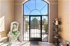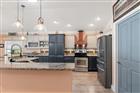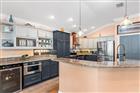 Rare privacy meets "Florida Coastal" luxury in this exquisitely upgraded, stretched Lantana model situated on a sprawling .30-acre homesite in the sought-after Village of Collier. Offering a secluded sanctuary with no rear neighbors and professional privacy screening, this property is a masterclass in indoor-outdoor living. The massive, screened lanai is an entertainer’s dream, featuring porcelain tile flooring, retractable solar screens, a designer beach-style bar and barbecue area, and a heated designer pool with a waterfall and app-based controls. Inside, the home has been meticulously updated with high-end designer finishes. The heart of the home is the stunning kitchen remodel completed last year, which features extended cabinetry and granite countertops, freshly painted cabinetry, a custom copper range hood and copper sink, and a wine refrigerator. This space is further elevated by custom-installed recessed lighting, complemented by upgraded designer ceiling fans and lighting fixtures throughout the entire home. Architectural elegance abounds with crown molding, solar tubes, and automated shades in the living area. The primary suite is a true retreat with lanai access, automatic blackout shades, and a private three-person hot tub, while the spa-like bath features a Roman shower, soaking tub, and bidet. Practicality is not overlooked, with a two-car garage, two golf-cart bays, a remote-controlled golf-cart screen, and an expansive attic for storage. Modern essentials include a 2025 HVAC motor, breakage film on all windows, and integrated smart-home systems for climate (Ecobee), irrigation (Hydrawise), and pool operation (OmniLogic). Located just minutes from Brownwood Paddock Square, this home offers the perfect balance of resort-style seclusion and Villages convenience.